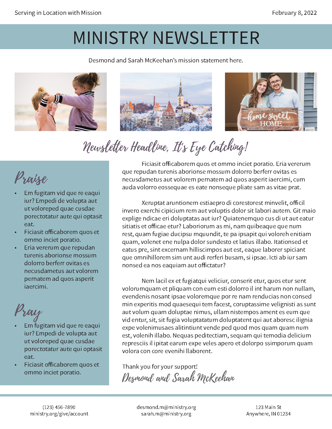 Here are some sample prayer letter templates that you're free to use for your ministry updates.